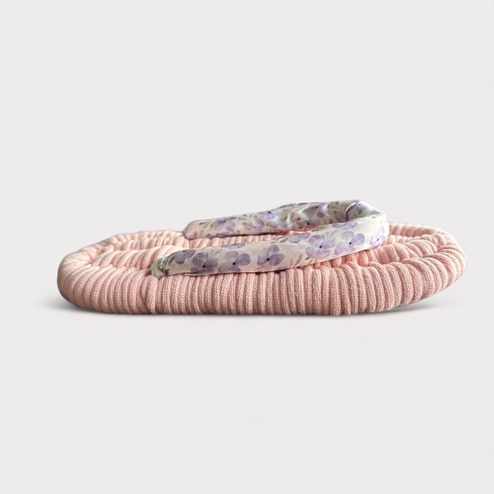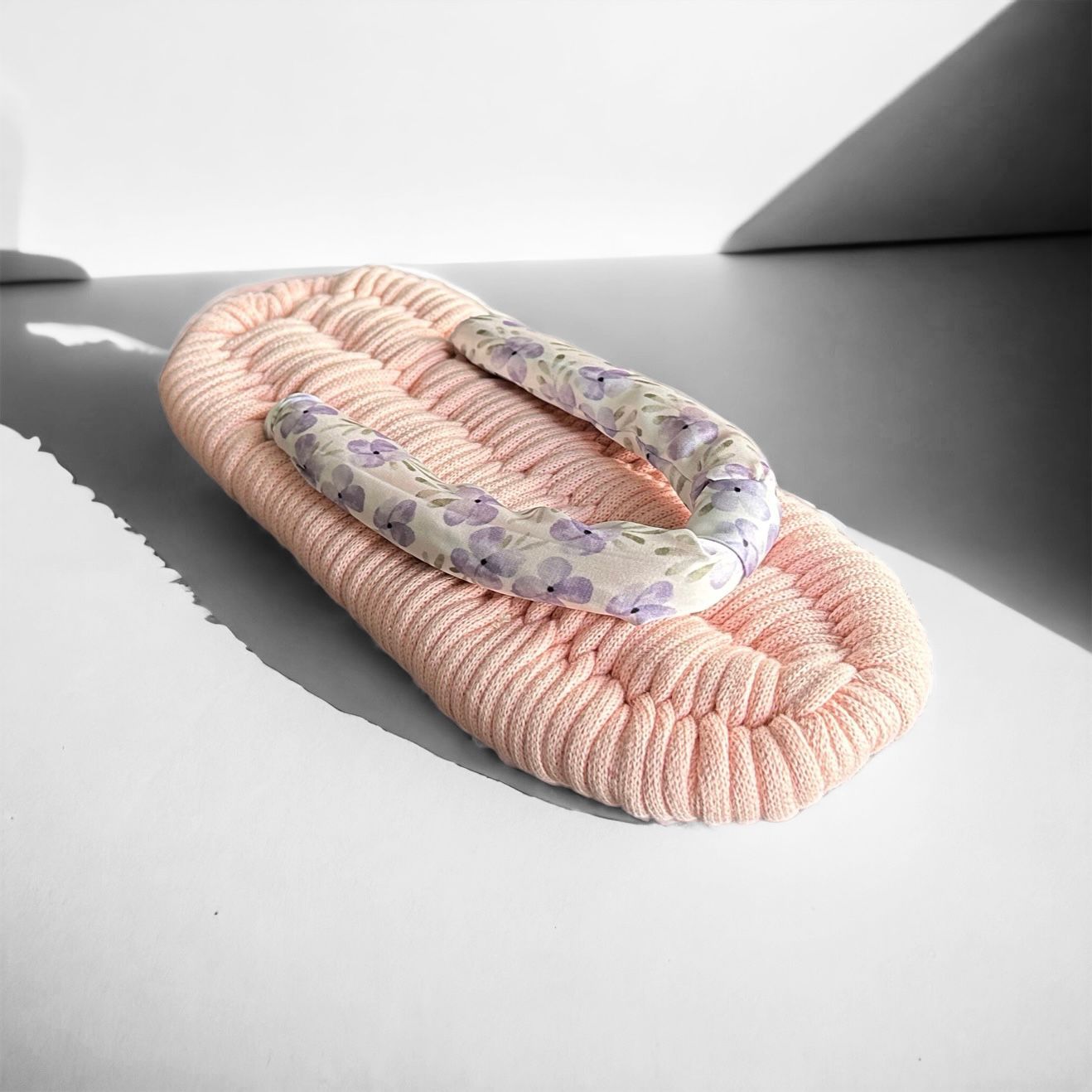 This staggering handmade masterpiece is crafted with utmost finesse. The delicate pink hue intertwines with intricate floral designs, mirroring an unparalleled blend of elegance and comfort. This design was inspired by the Japanese flower Sumire (Violet). Because of its difficulty and phenomenal craftsmanship, the production quantity is currently at 42 pairs monthly.